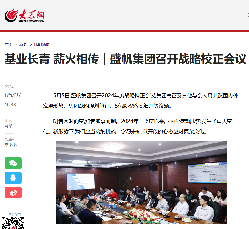 5月5日,盛帆集團(tuán)召開(kāi)2024年度戰(zhàn)略校正會(huì)議,集團(tuán)高管及其他與會(huì)人員共議國(guó)內(nèi)外宏觀形勢(shì)、集團(tuán)戰(zhàn)略規(guī)劃修訂、5億股權(quán)落實(shí)細(xì)···