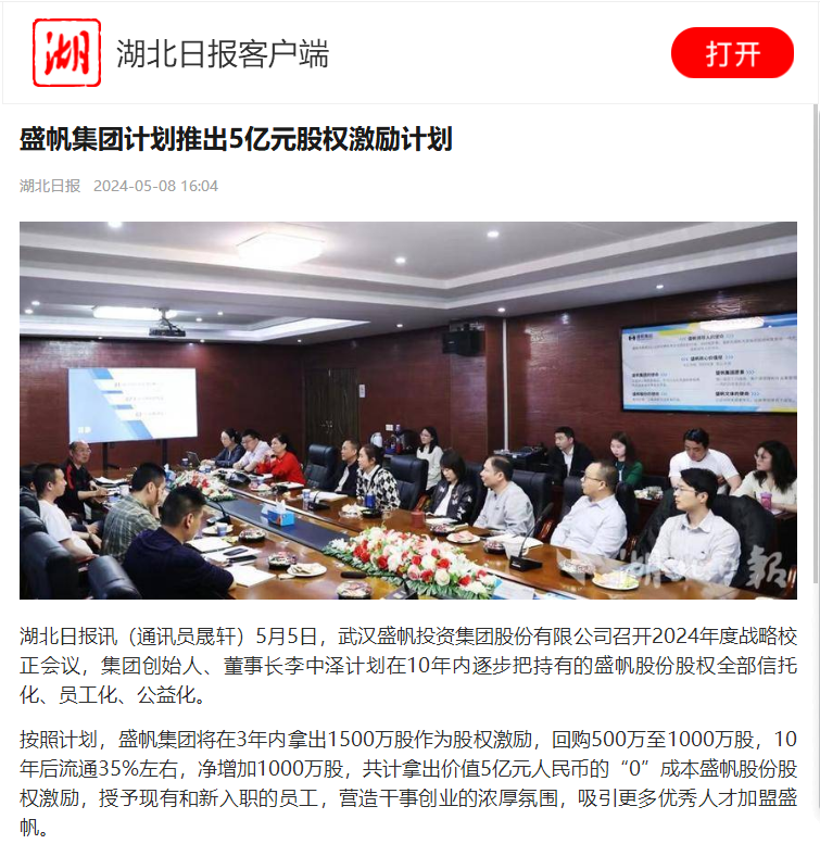 5月5日,盛帆集團(tuán)召開(kāi)2024年度戰(zhàn)略校正會(huì)議,宣布將打造“楚天星谷”總部基地,并明確未來(lái)10年目標(biāo)——營(yíng)收與市值分別達(dá)···