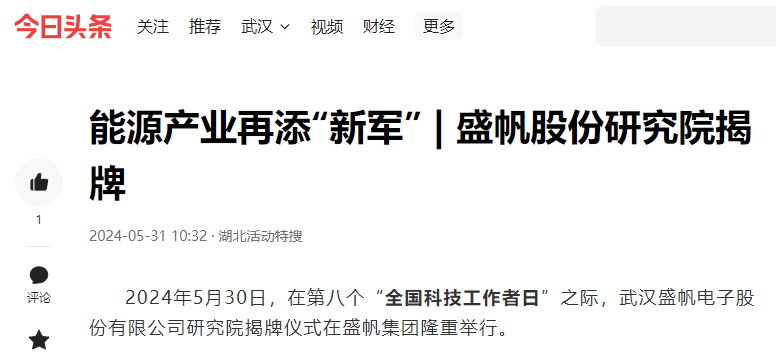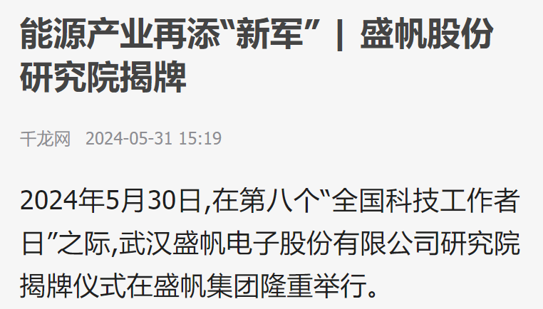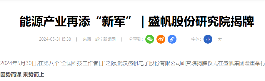 2024年5月30日,在第八個(gè)“全國(guó)科技工作者日”之際,武漢盛帆電子股份有限公司研究院揭牌儀式在盛帆集團(tuán)隆重舉行。因勢(shì)而謀···