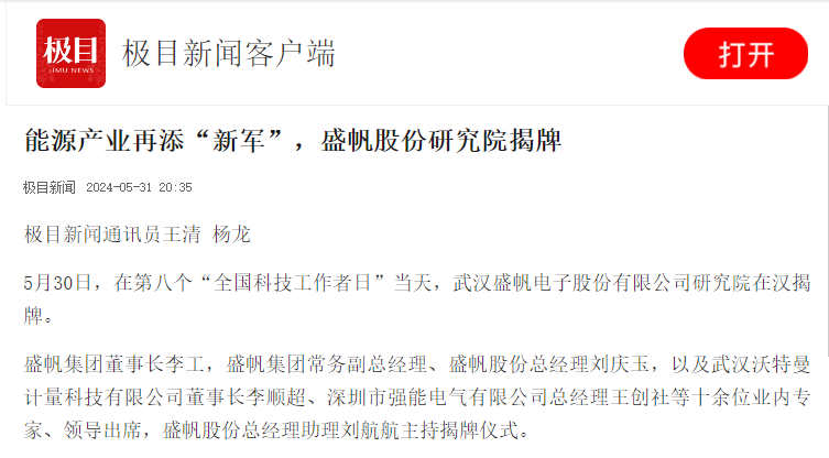 極目新聞通訊員王清 楊龍5月30日,在第八個(gè)“全國(guó)科技工作者日”當(dāng)天,武漢盛帆電子股份有限公司研究院在漢揭牌。盛帆集···